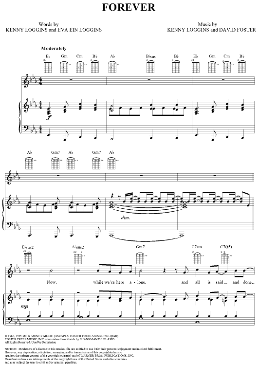 Digital Sheet Music for Forever by Kenny Loggins, Eva Ein Loggins, David Foster scored for Piano/Vocal/Chords; id:120544