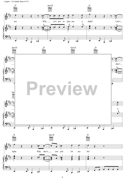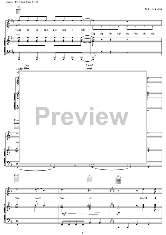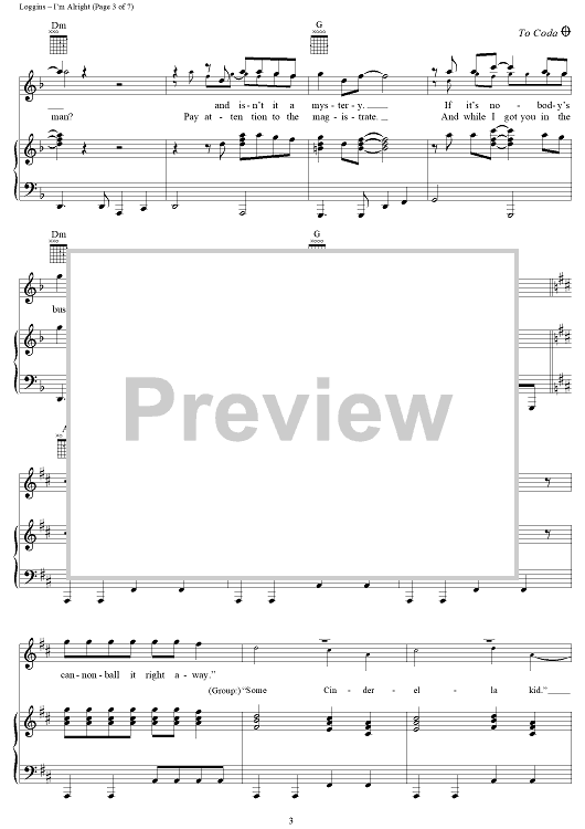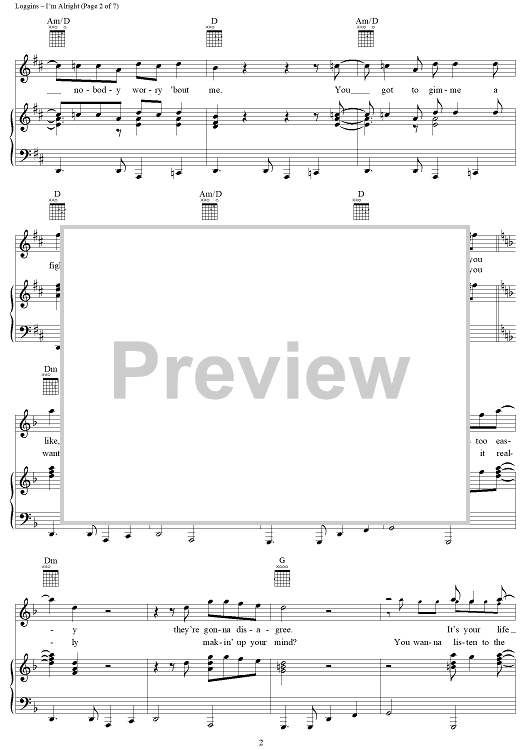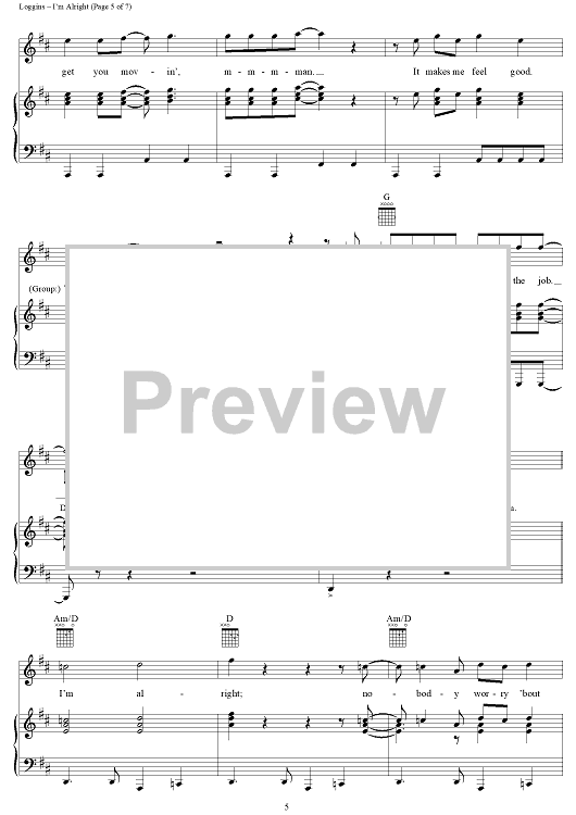 Digital Sheet Music for I'm Alright by Kenny Loggins scored for Piano/Vocal/Chords; id:251104