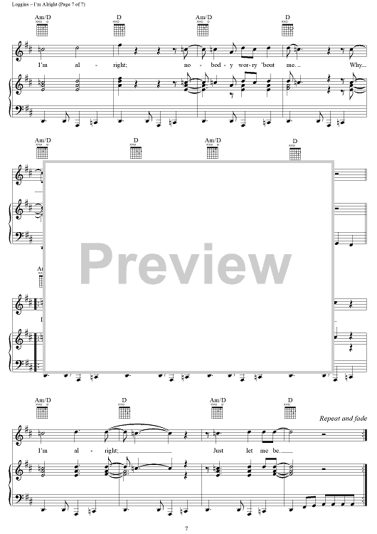 "I'm Alright" Sheet Music by Kenny Loggins