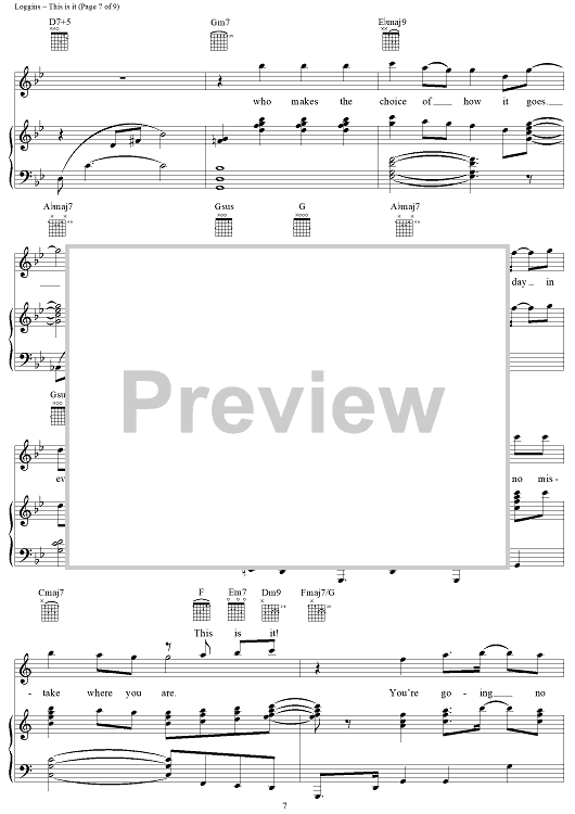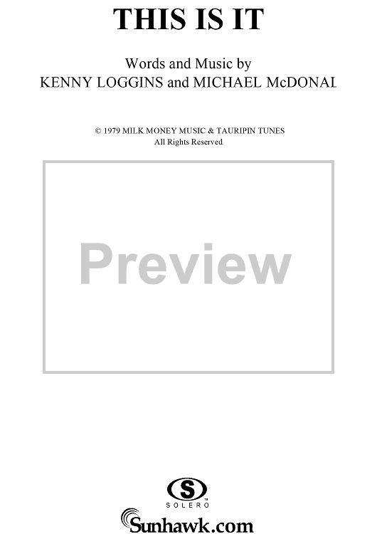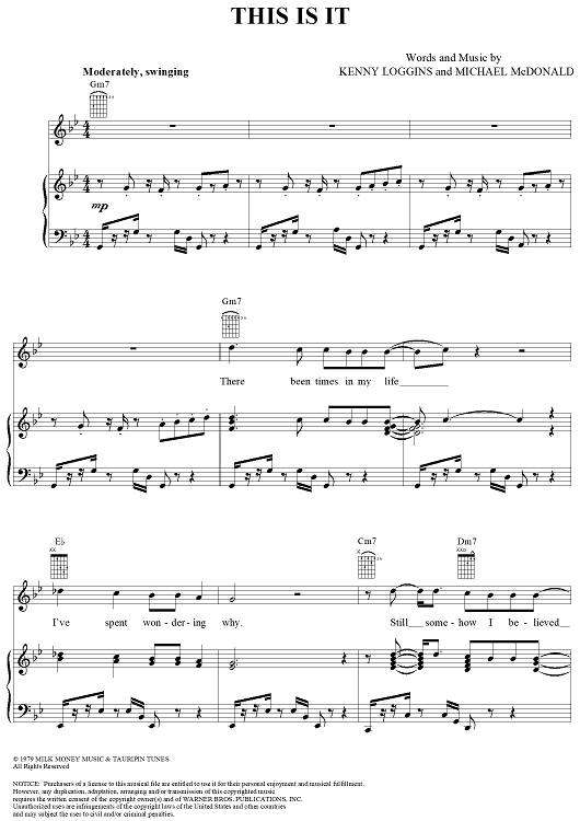 Digital Sheet Music for This is It by Kenny Loggins, Michael McDonald scored for Piano/Vocal/Chords; id:124356