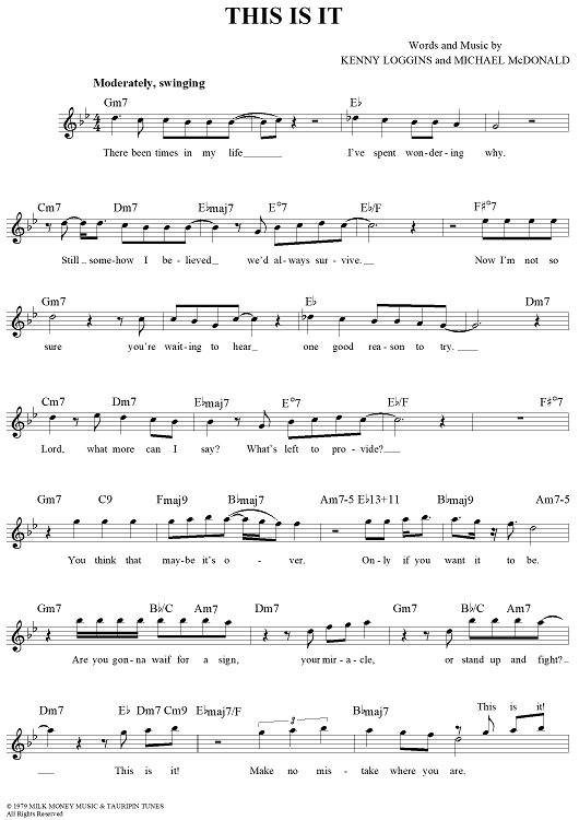 Digital Sheet Music for This is It by Kenny Loggins, Michael McDonald scored for Lead Sheet; id:250816