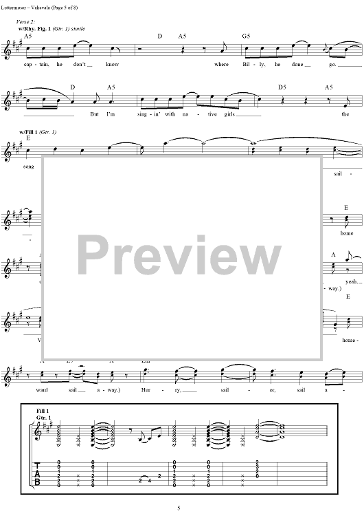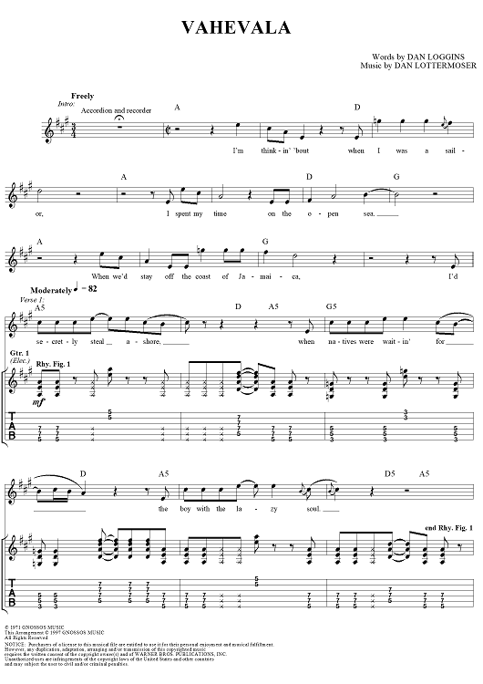 Digital Sheet Music for Vahevala by Kenny Loggins, Jim Messina, Dan Lottermoser, Dan Loggins scored for Guitar Tab/Vocal; id:119733