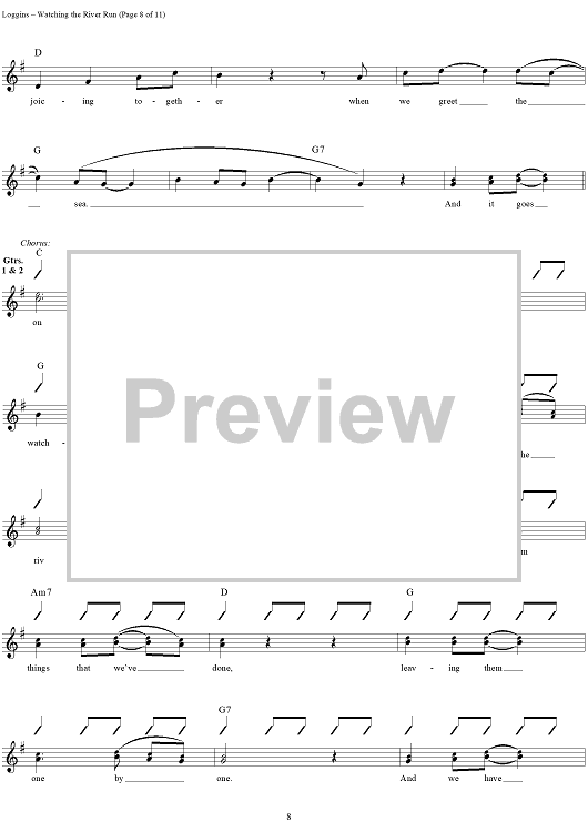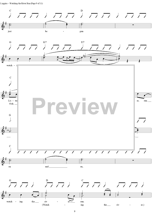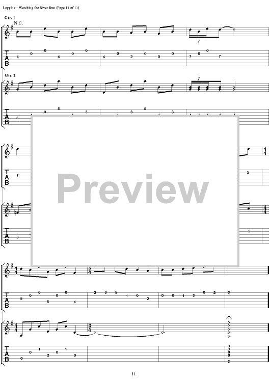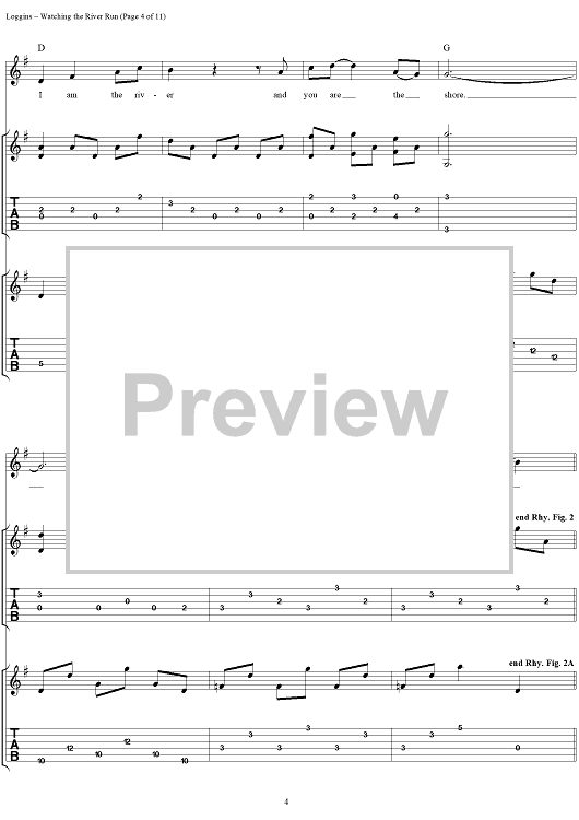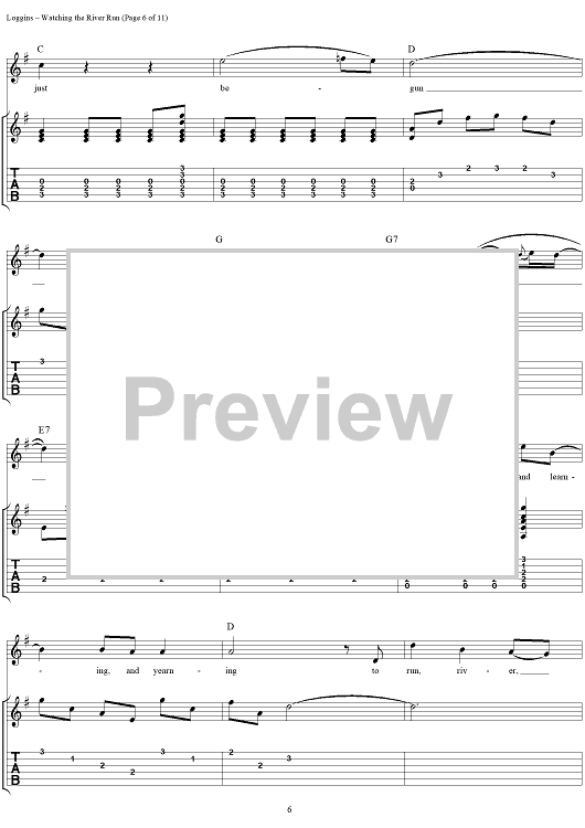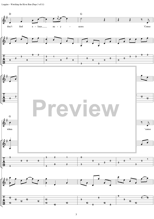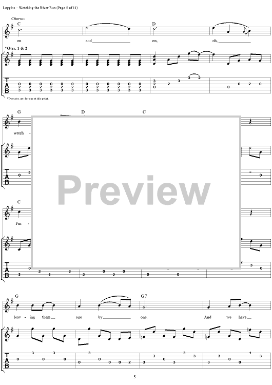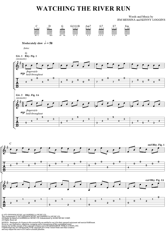 Digital Sheet Music for Watching the River Run by Kenny Loggins, Jim Messina scored for Guitar Tab/Vocal; id:119737