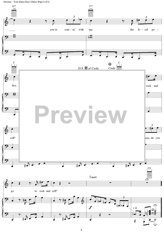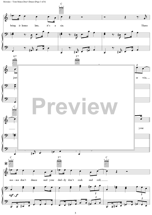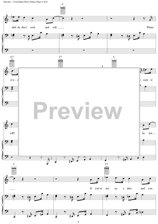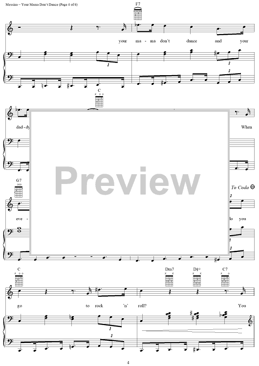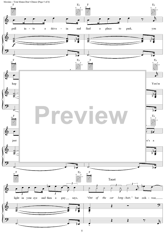 Digital Sheet Music for Your Mama Don't Dance by Kenny Loggins, Jim Messina scored for Piano/Vocal/Chords; id:131724