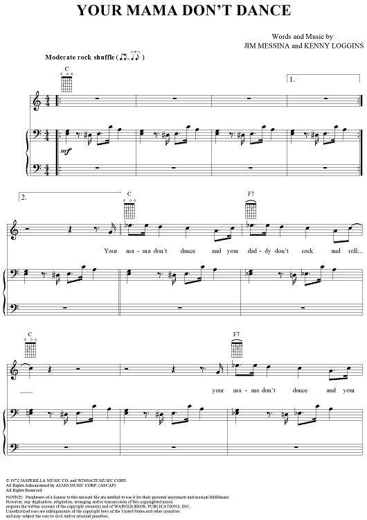 "Your Mama Don't Dance" Sheet Music by Kenny Loggins