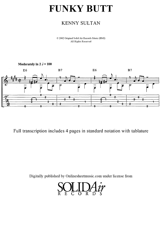 Digital Sheet Music for Funky Butt (No MP3) by Kenny Sultan scored for Guitar Tab; id:452120