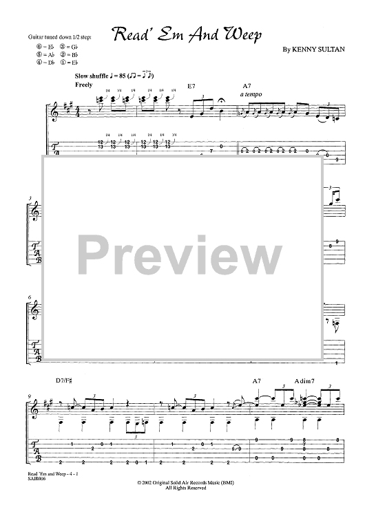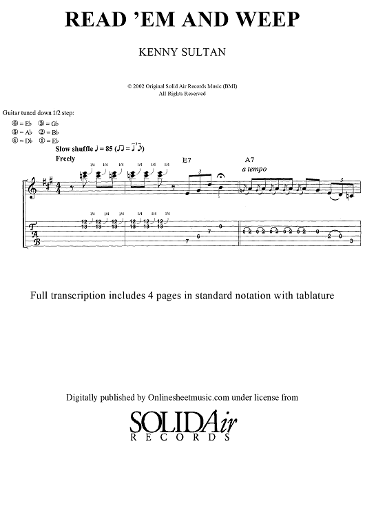 Digital Sheet Music for Read' Em And Weep (No MP3) by Kenny Sultan scored for Guitar Tab; id:452125