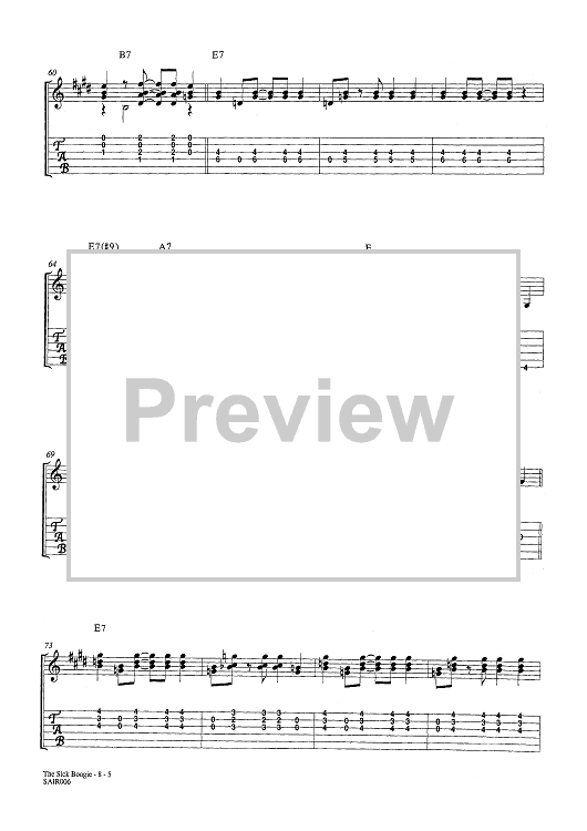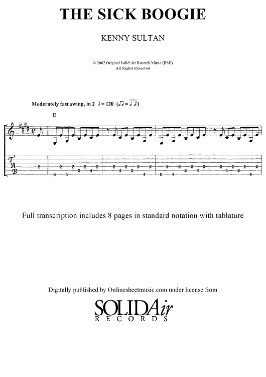 Digital Sheet Music for The Sick Boogie (No MP3) by Kenny Sultan scored for Guitar Tab; id:452127
