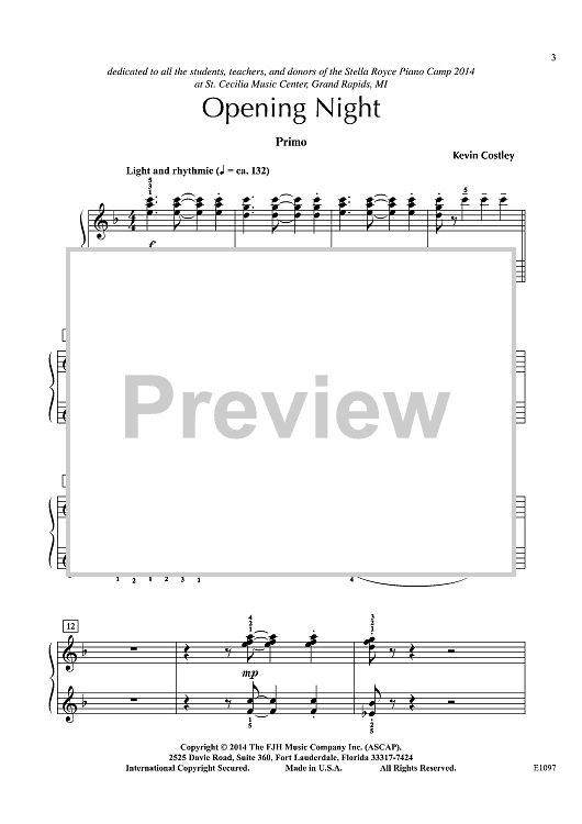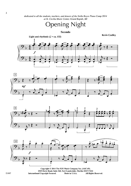 "Opening Night" Sheet Music by Kevin Costley