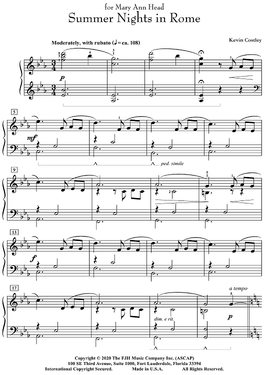 "Summer Nights in Rome" Sheet Music by Kevin Costley