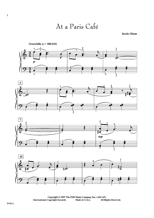 A charming, lilting and lyrical melody over a waltz accompaniment paints a sound picture of a traditional Paris scene.