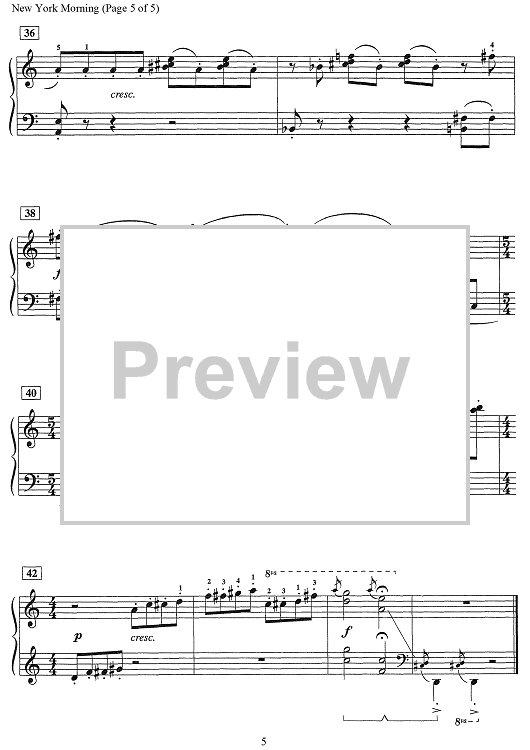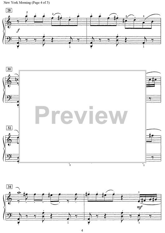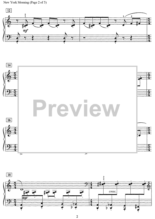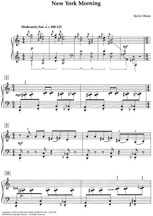 Digital Sheet Music for New York Morning by Kevin Olson scored for Piano; id:497233