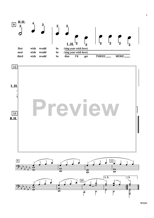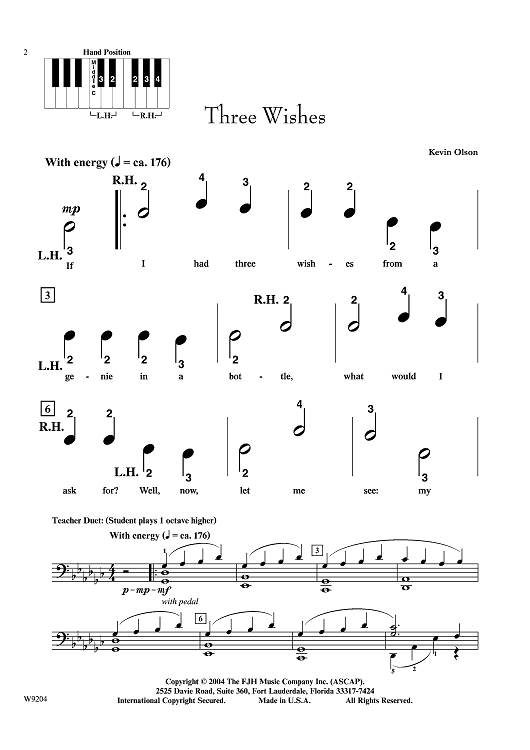 This charming pre-reading solo will be a favorite among beginners with its easy black key patterns and delightful lyrics. Students are asked to create wishes, as if they had their own genie. Each time the verse is repeated, a different dynamic level is used.