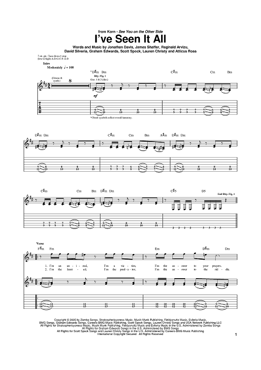 Digital Sheet Music for I've Seen It All by Jonathan Davis, Fieldy, Korn, Lauren Christy, David Silveria, Munky, Graham Edwards, Scott Spock, Atticus Ross scored for Guitar Tab; id:389421