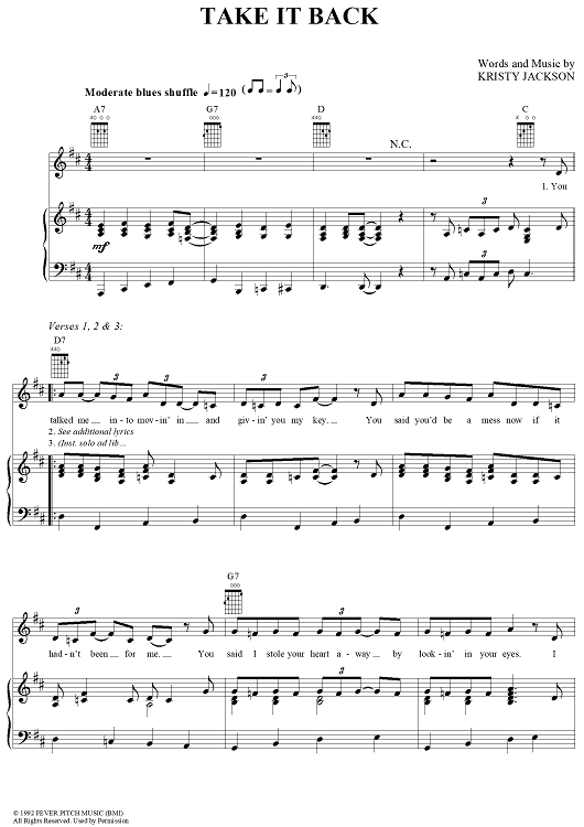 Digital Sheet Music for Take It Back by Reba, Kristy Jackson scored for Piano/Vocal/Chords; id:286676