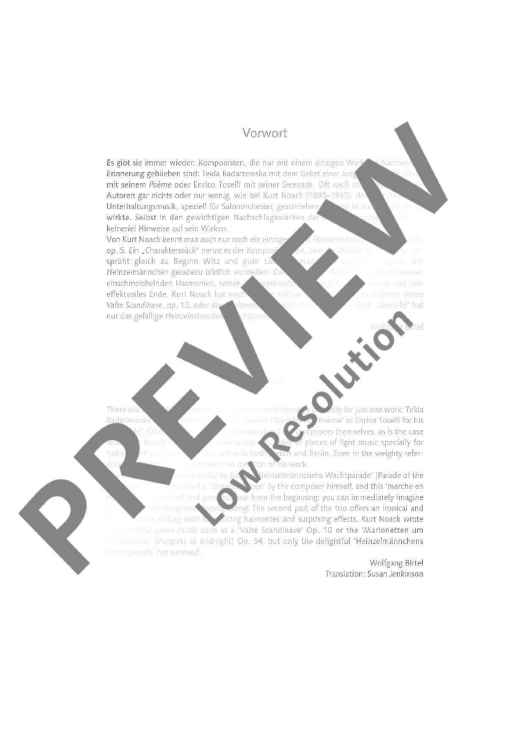 The only work still known today by Noack, 'Heinzelmännchens Wachtparade' [Parade of the Brownies] Op. 5 was called a 'character piece' by the composer himself, and this 'marche en miniature' conveys wit and good humour from the beginning; you can immediately imagine a picture of the brownies tripping along! The second part of the trio offers an ironical and very effectie ending with its enticing harmonies and surprising effects.