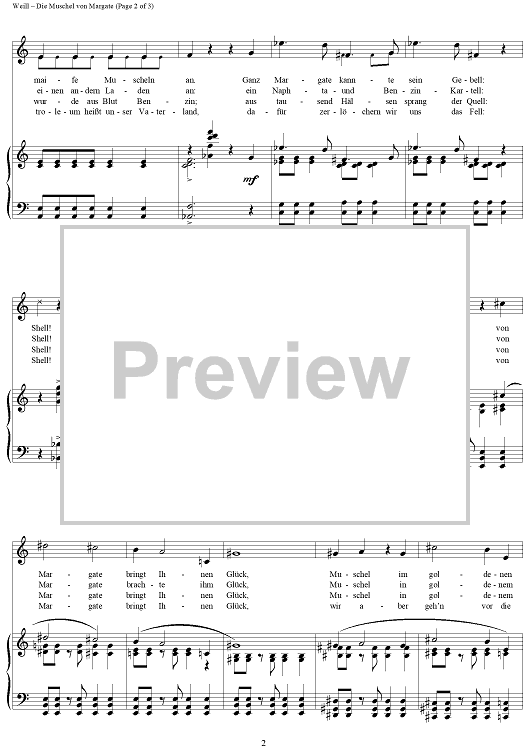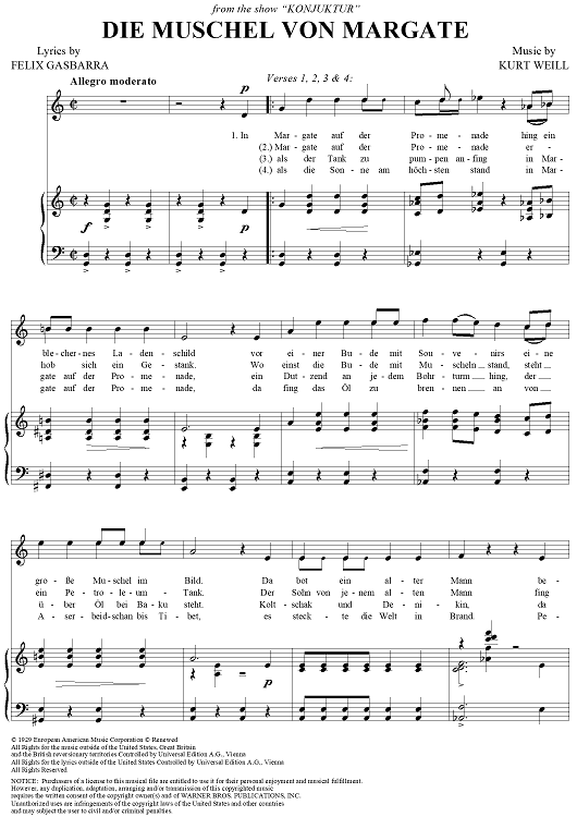 "Die Muschel von Margate" Sheet Music by Kurt Weill