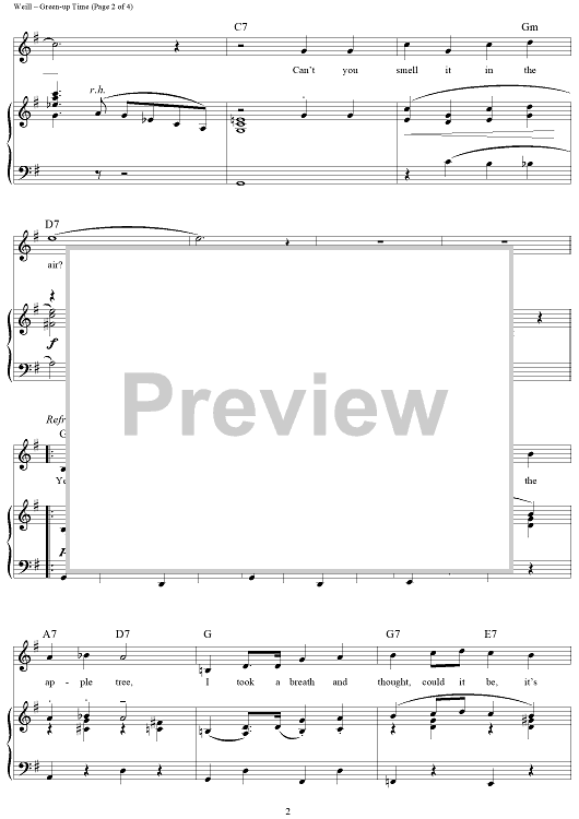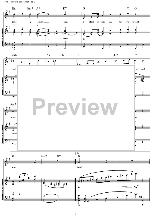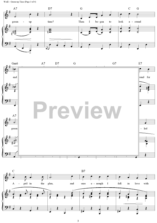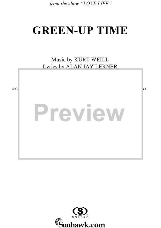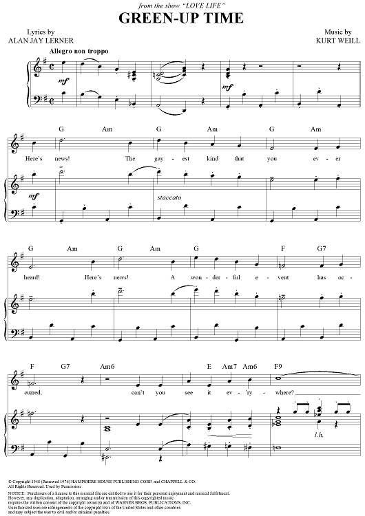 Digital Sheet Music for Green-up Time by Alan Jay Lerner, Kurt Weill scored for Piano/Vocal; id:263486