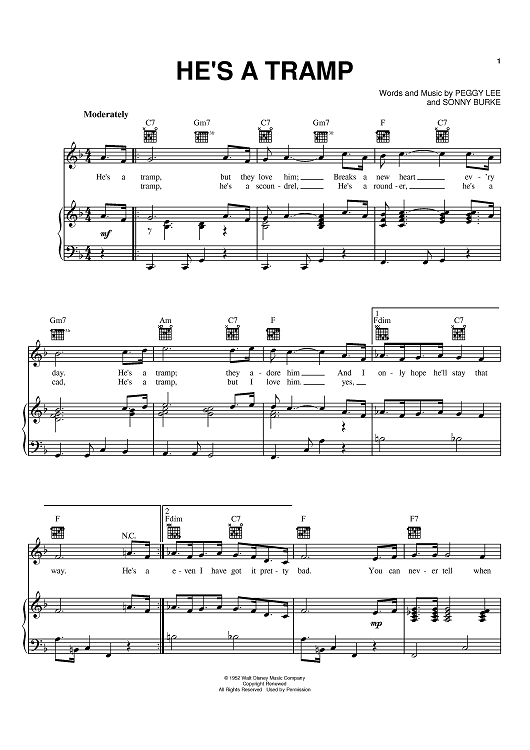 Digital Sheet Music for He's A Tramp by Sonny Burke, Peggy Lee scored for Piano/Vocal/Chords; id:368707