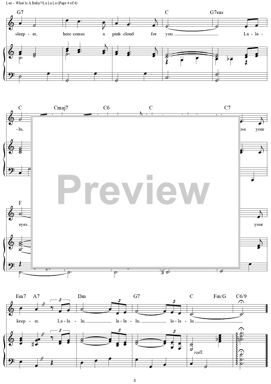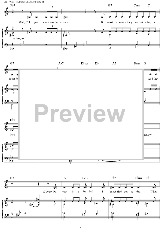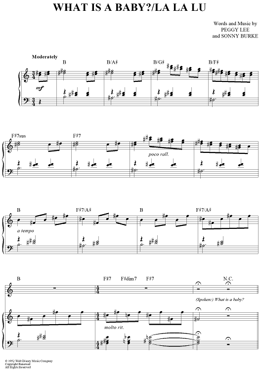 Digital Sheet Music for What Is a Baby?/La La Lu by Sonny Burke, Peggy Lee scored for Piano/Vocal/Chords; id:418002