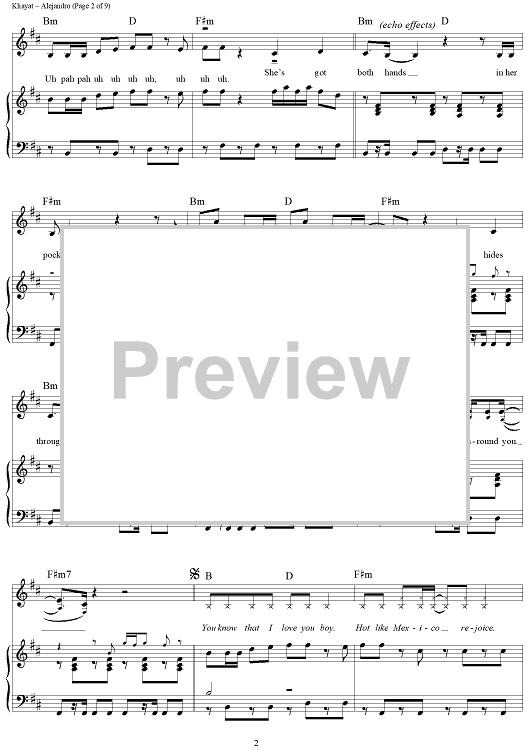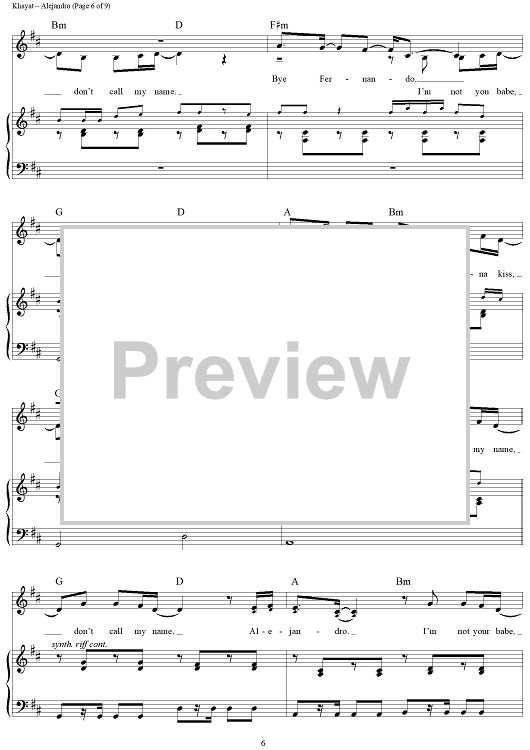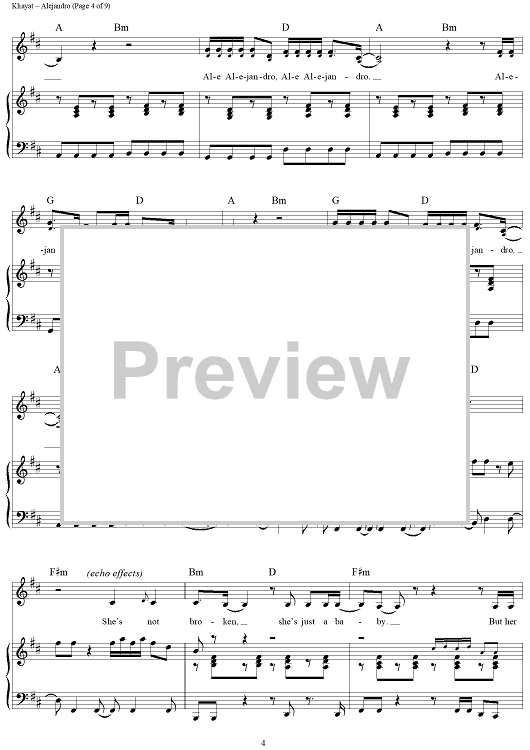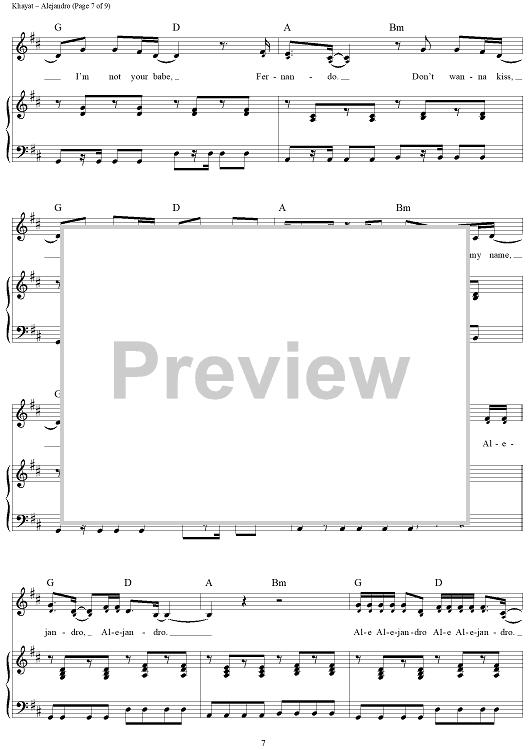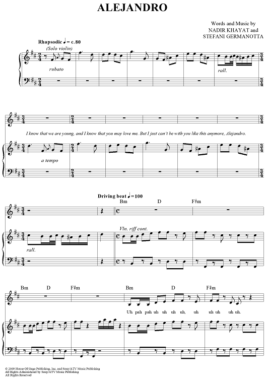 Digital Sheet Music for Alejandro by Stefani Germanotta, Lady Gaga, Nadir Khayat scored for Piano/Vocal/Chords; id:411444
