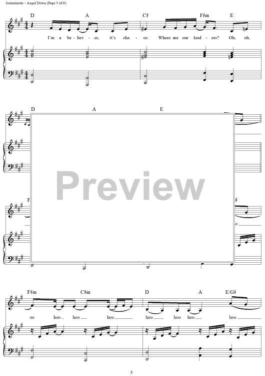 "Angel Down" Sheet Music by Lady Gaga
