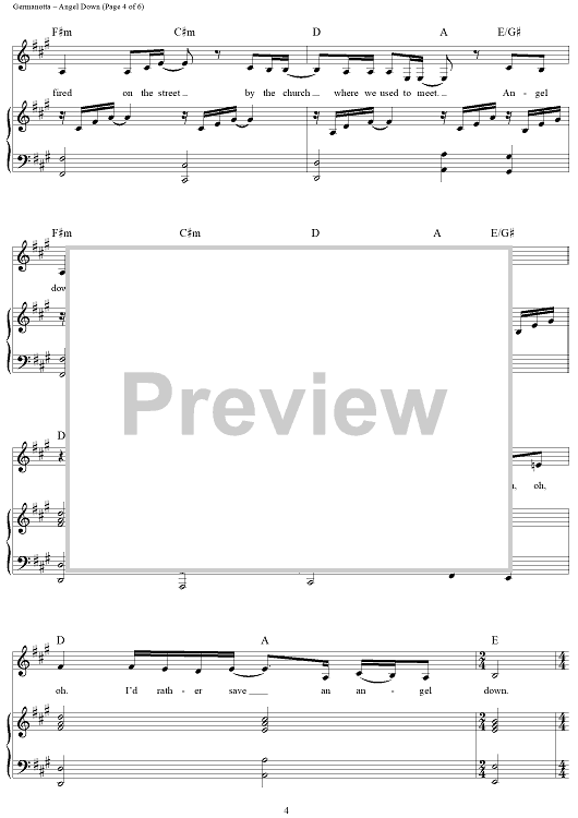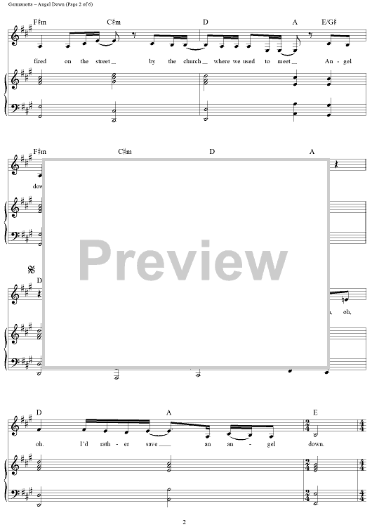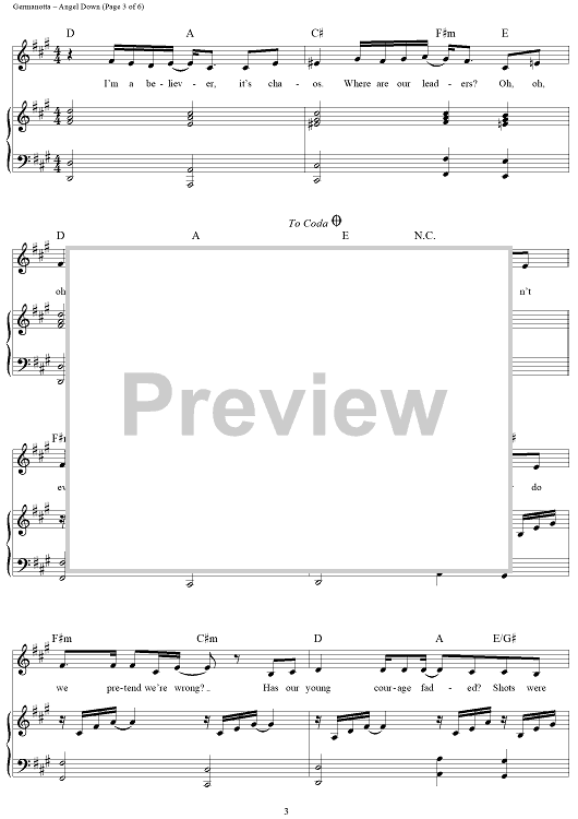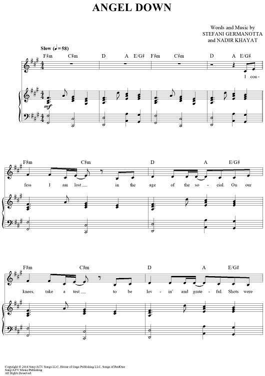 Digital Sheet Music for Angel Down by Stefani Germanotta, Lady Gaga, Nadir Khayat scored for Piano/Vocal/Chords; id:463416