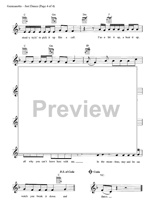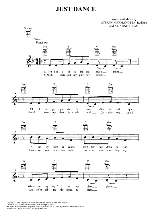 Digital Sheet Music for Just Dance by Akon, Stefani Germanotta, RedOne, Lady Gaga scored for Ukulele/Vocal; id:444478