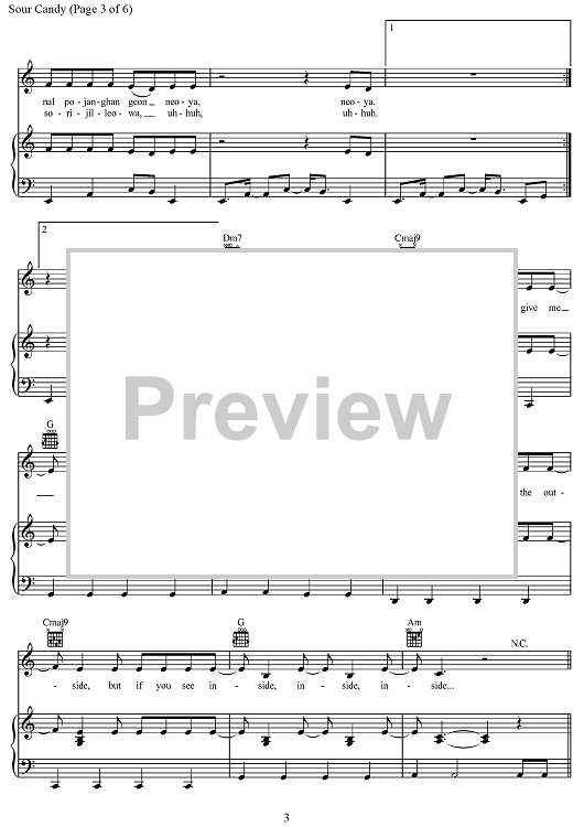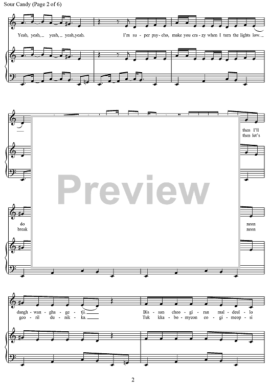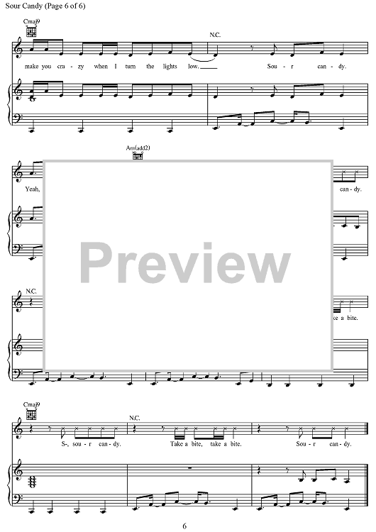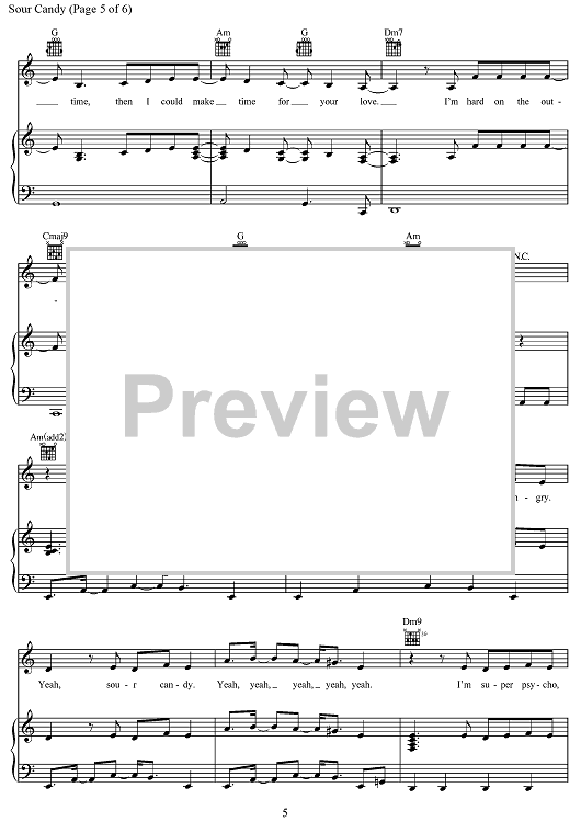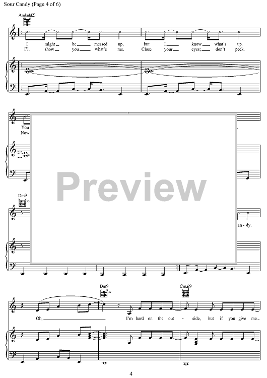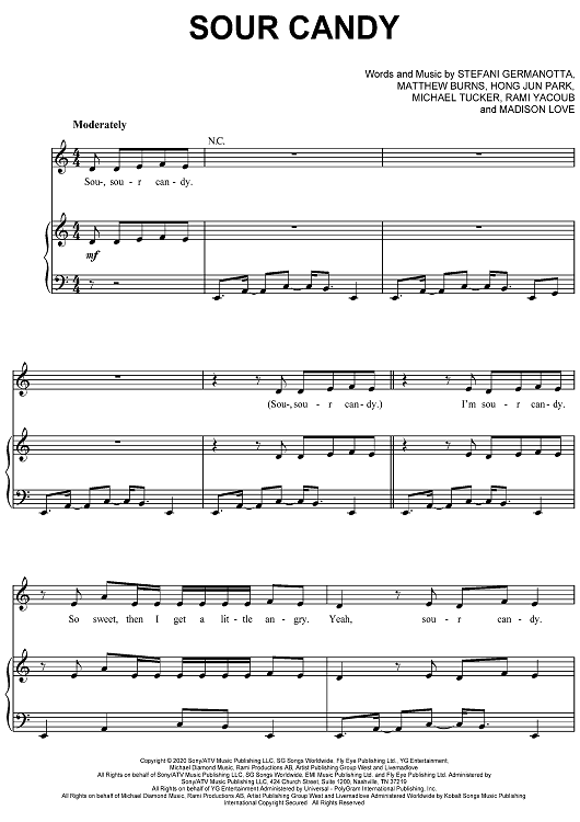 Digital Sheet Music for Sour Candy by Rami Yacoub, Stefani Germanotta, Lady Gaga, Michael Tucker, Matthew Burns, Madison Love, Hong Jun Park scored for Piano/Vocal/Chords; id:468431