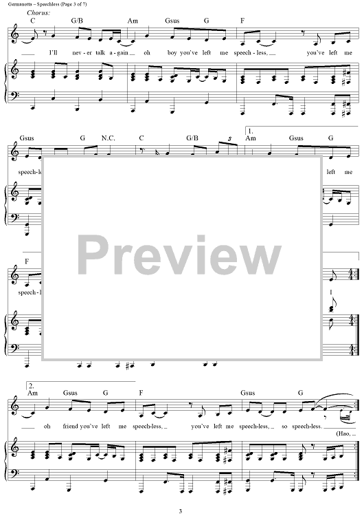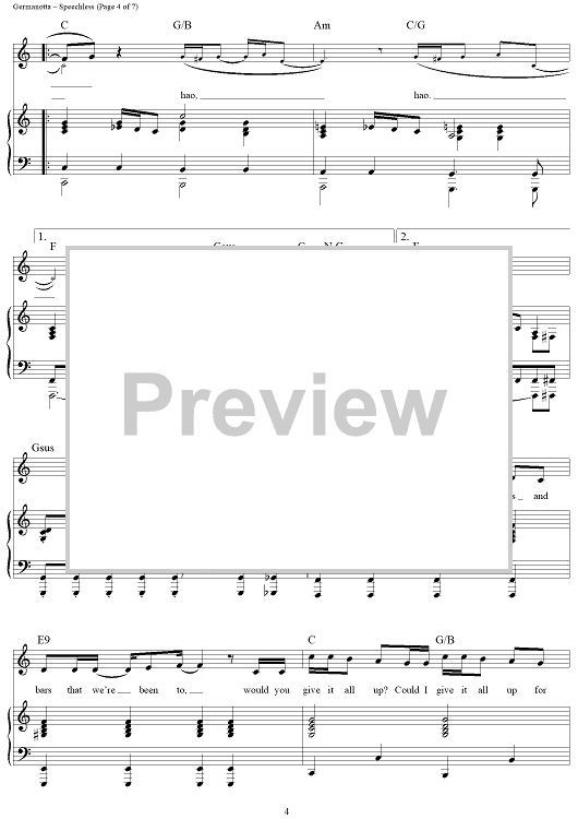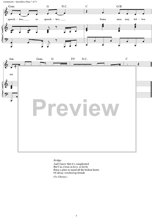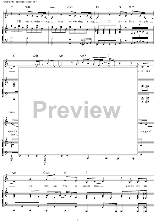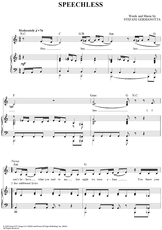 Digital Sheet Music for Speechless by Stefani Germanotta, Lady Gaga scored for Piano/Vocal/Chords; id:408550