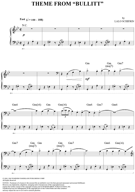 "Bullitt (Main Theme)" Sheet Music by Lalo Schifrin