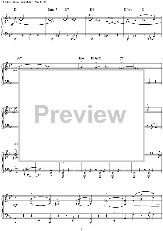 Digital Sheet Music for Bullitt (Main Theme) by Lalo Schifrin scored for Piano Solo; id:113867