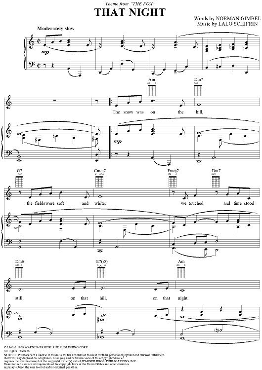 Digital Sheet Music for That Night by Norman Gimbel, Lalo Schifrin scored for Piano/Vocal/Chords; id:120607