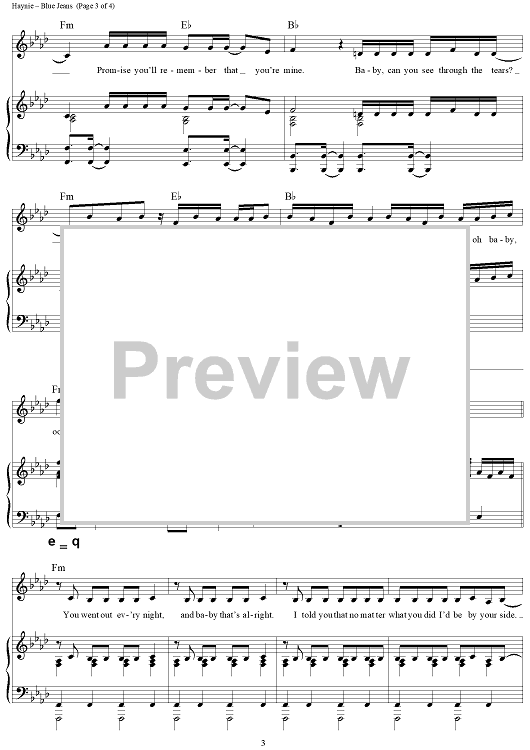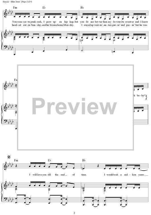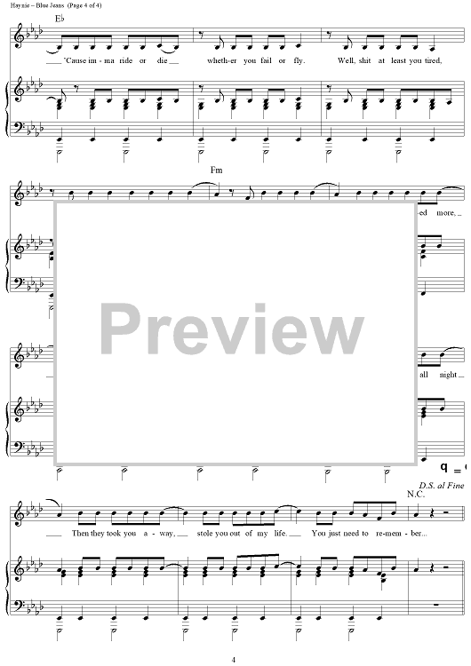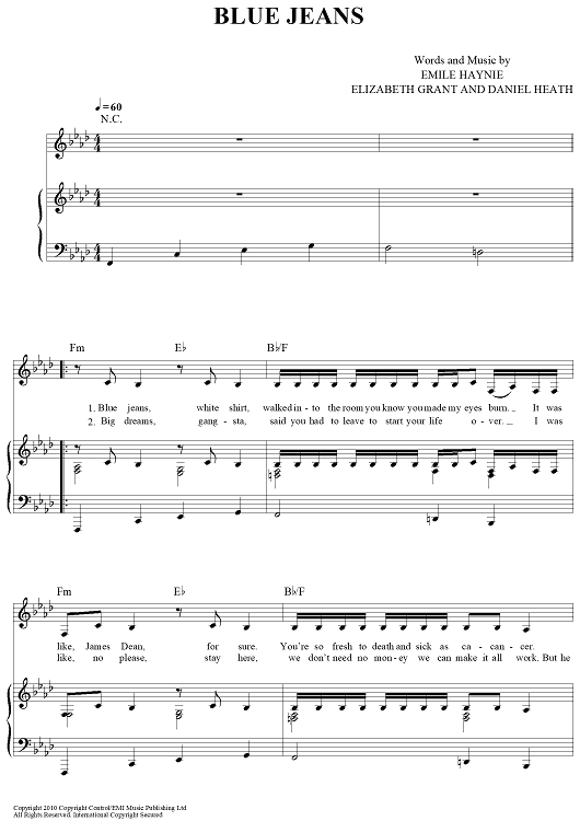 Digital Sheet Music for Blue Jeans by Elizabeth Grant, Lana Del Rey, Emile Haynie, Daniel Heath scored for Piano/Vocal/Chords; id:441785