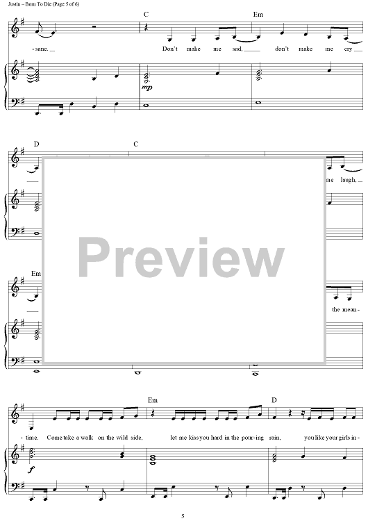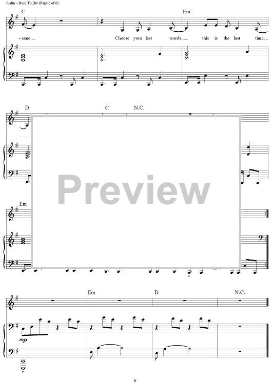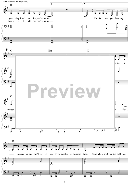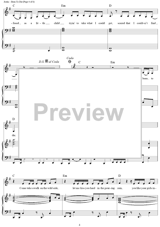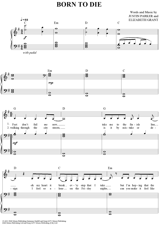 Digital Sheet Music for Born To Die by Justin Parker, Elizabeth Grant, Lana Del Rey scored for Piano/Vocal/Chords; id:429467