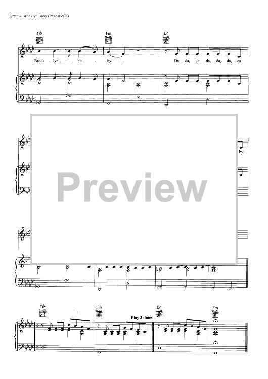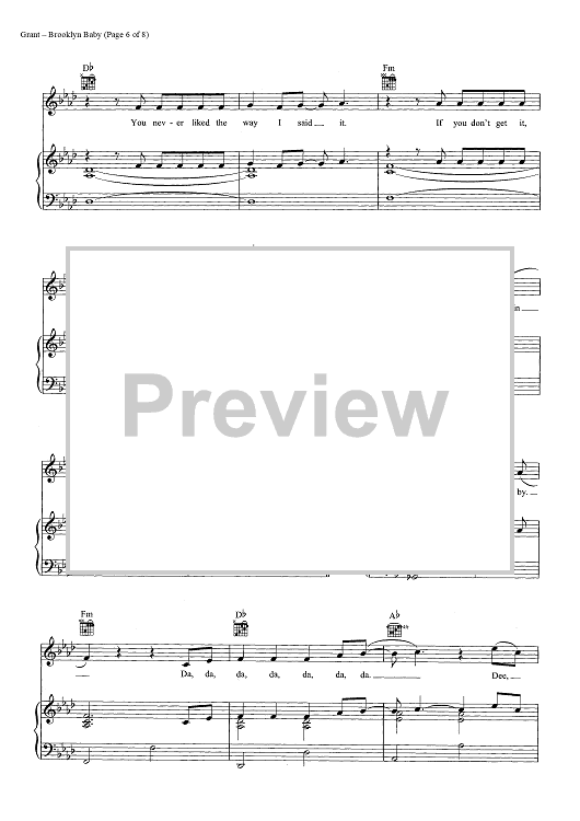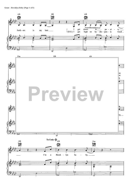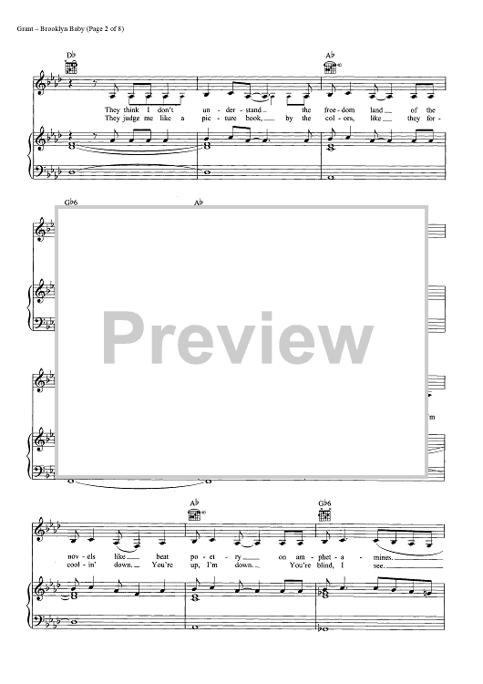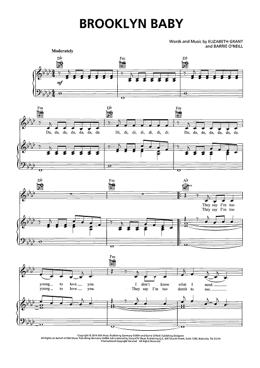 Digital Sheet Music for Brooklyn Baby by Elizabeth Grant, Lana Del Rey, Barrie O'Neill scored for Piano/Vocal/Chords; id:446987