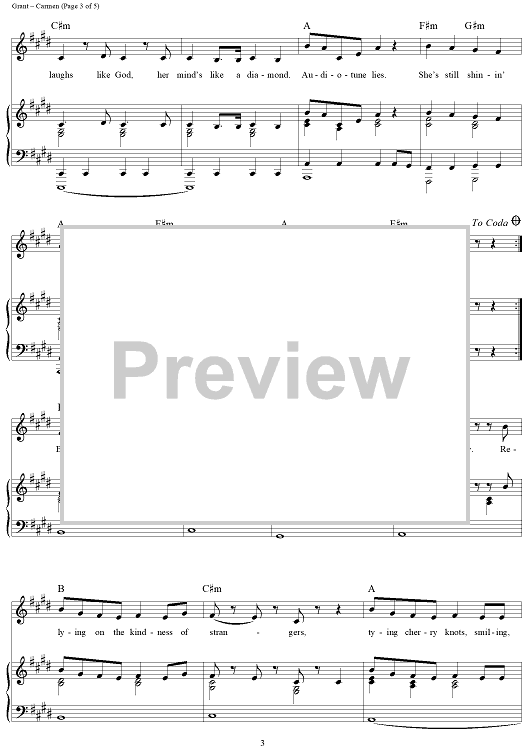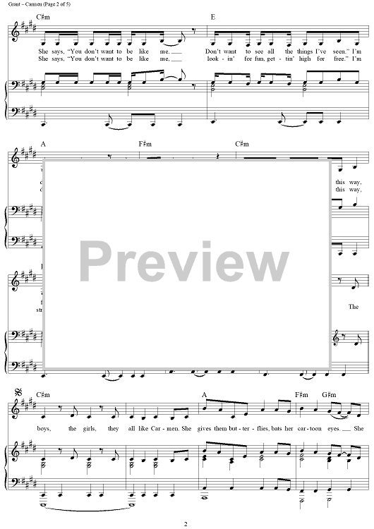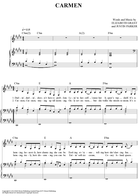 Digital Sheet Music for Carmen by Justin Parker, Elizabeth Grant, Lana Del Rey scored for Piano/Vocal/Chords; id:443008