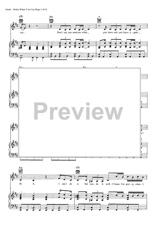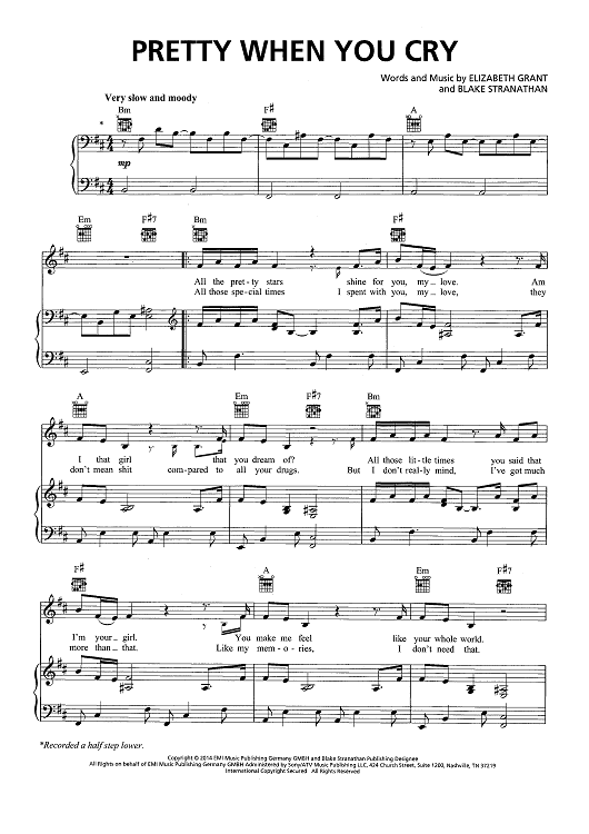 Digital Sheet Music for Pretty When You Cry by Elizabeth Grant, Lana Del Rey, Blake Stranathan scored for Piano/Vocal/Chords; id:446990