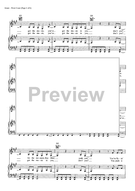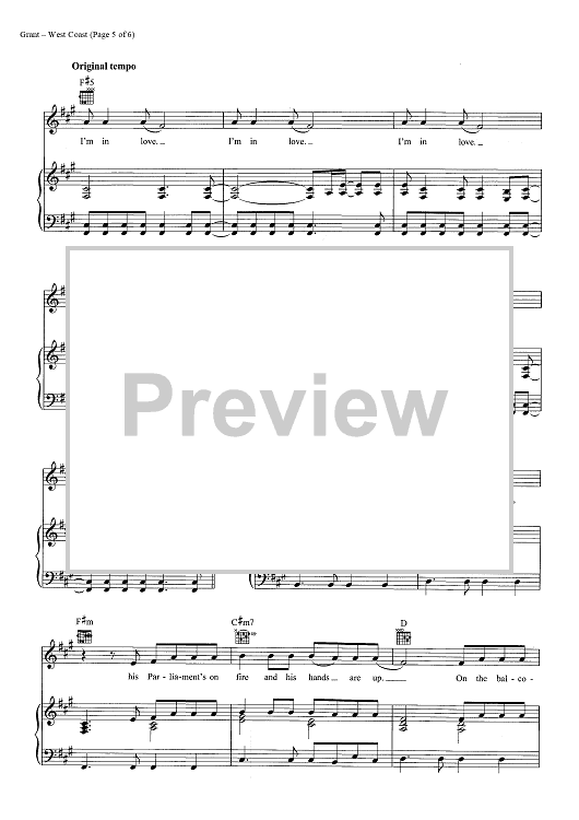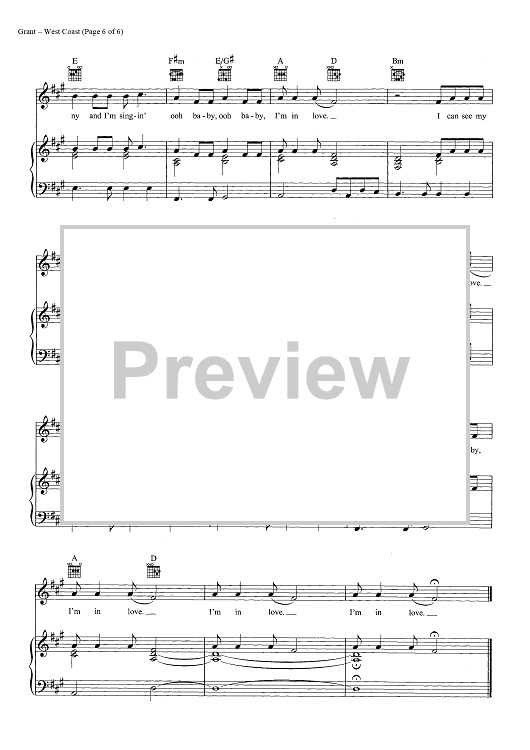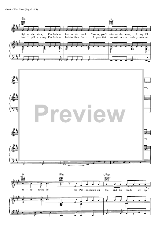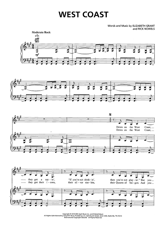 Digital Sheet Music for West Coast by Rick Nowels, Elizabeth Grant, Lana Del Rey scored for Piano/Vocal/Chords; id:446993