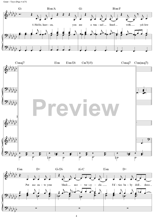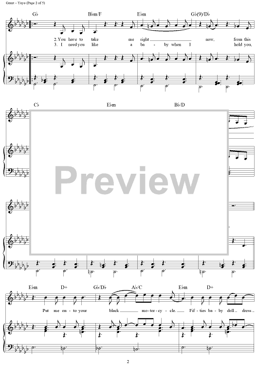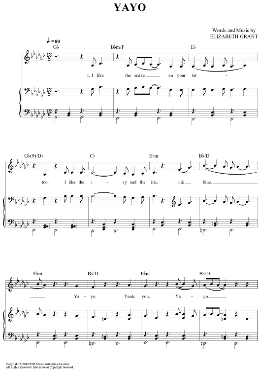 Digital Sheet Music for Yayo by Elizabeth Grant, Lana Del Rey scored for Piano/Vocal/Chords; id:443818