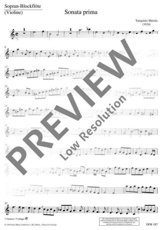 Digital Sheet Music for 2 Sonatas by Tarquinio Merula scored for Descant Recorder (violin) And Basso Continuo; id:482796