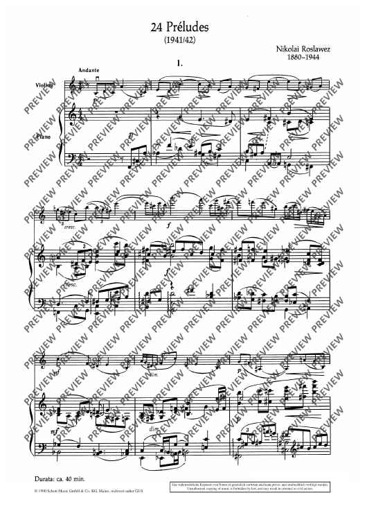 Digital Sheet Music for 24 Preludes by Nikolai Andreyevich Roslavets scored for Violin And Piano; id:496815