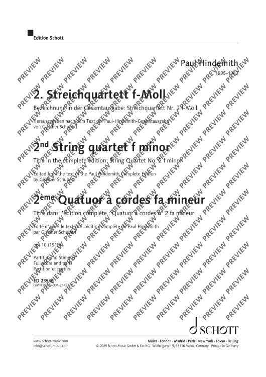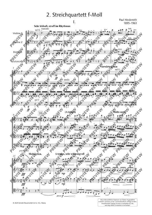 "2nd String Quartet F Minor - Score and Parts" Sheet Music by Paul Hindemith