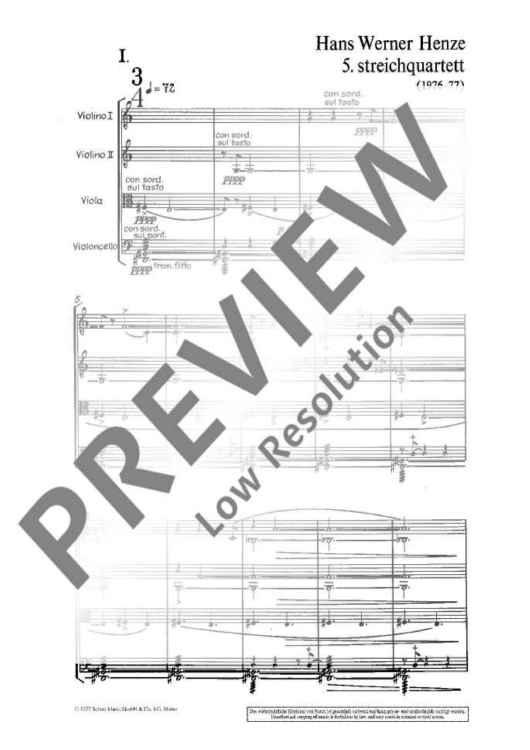 Digital Sheet Music for 5. String Quartet - Full Score by Hans Werner Henze scored for String Quartet; id:486983
