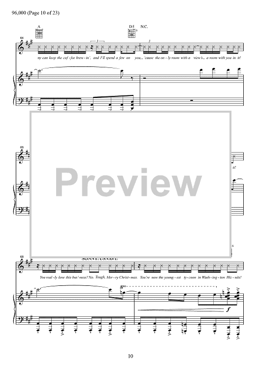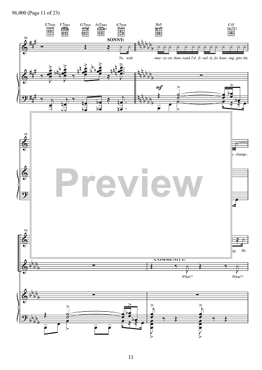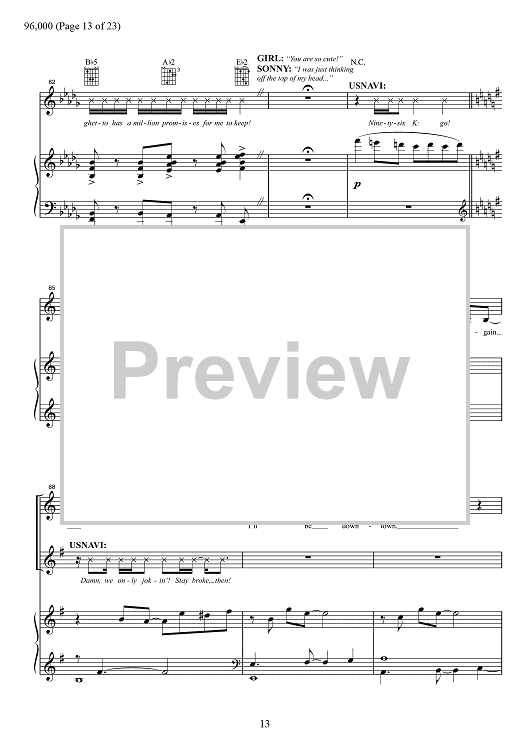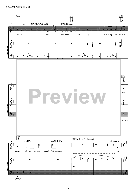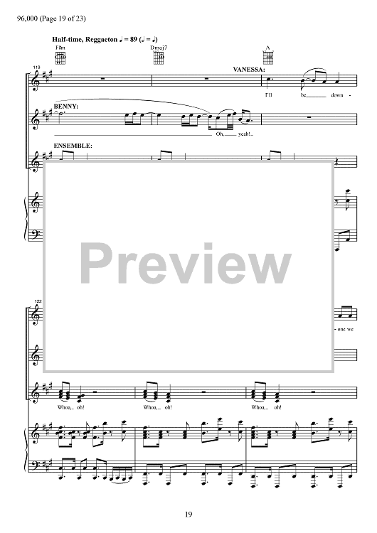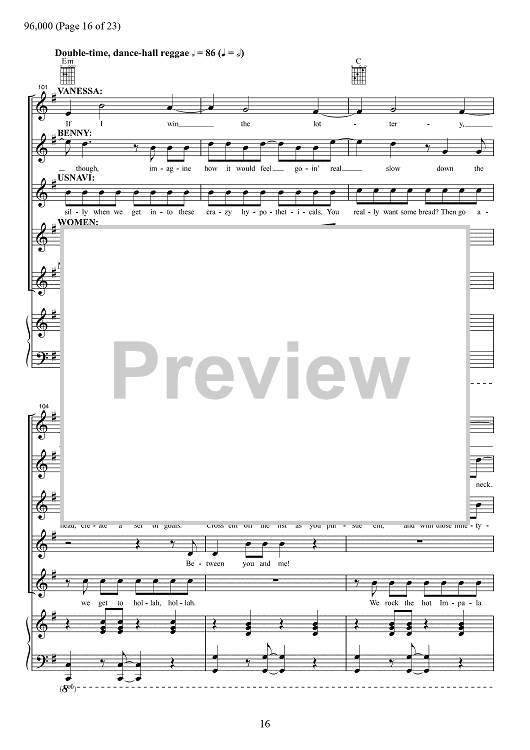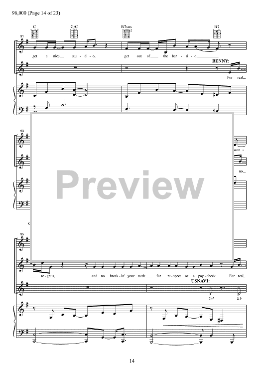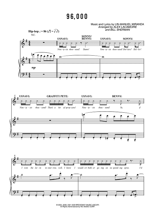 Digital Sheet Music for 96,000 by Lin-Manuel Miranda, Alex Lacamoire, Bill Sherman scored for Piano/Vocal/Chords; id:469413