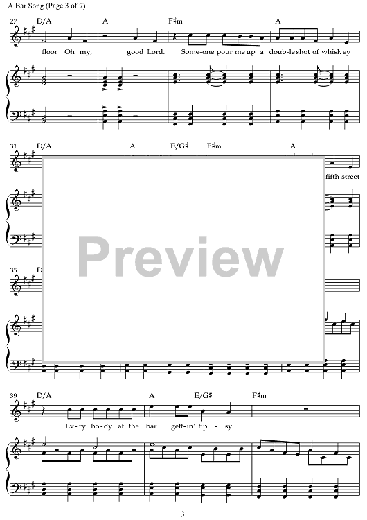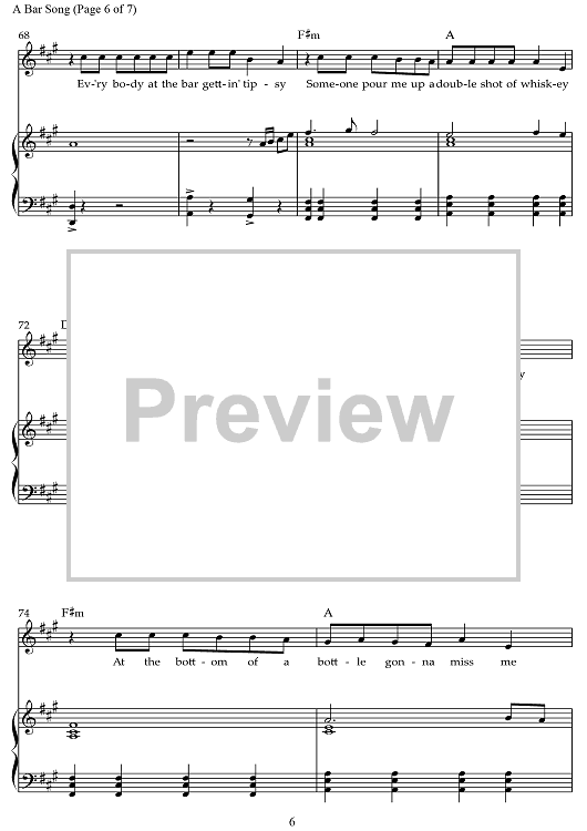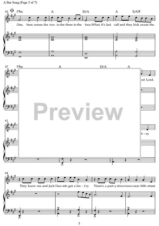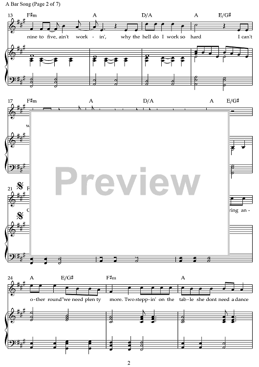 Digital Sheet Music for A Bar Song (Tipsy) by Mark Williams, Shaboozey, Jerrell Jones, Joe Kent, Nevin Sastry, Sean Cook, Barry McCormick scored for Piano/Vocal/Chords; id:504911