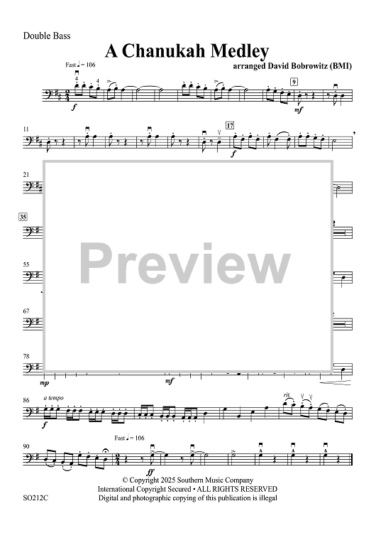 Digital Sheet Music for A Chanukah Medley - Double Bass by Traditional, David Bobrowitz scored for String Orchestra; id:507156