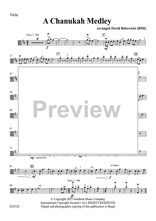 Digital Sheet Music for A Chanukah Medley - Viola by Traditional, David Bobrowitz scored for String Orchestra; id:507154