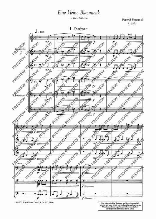 "A little Windmusic - Score" Sheet Music by Bertold Hummel