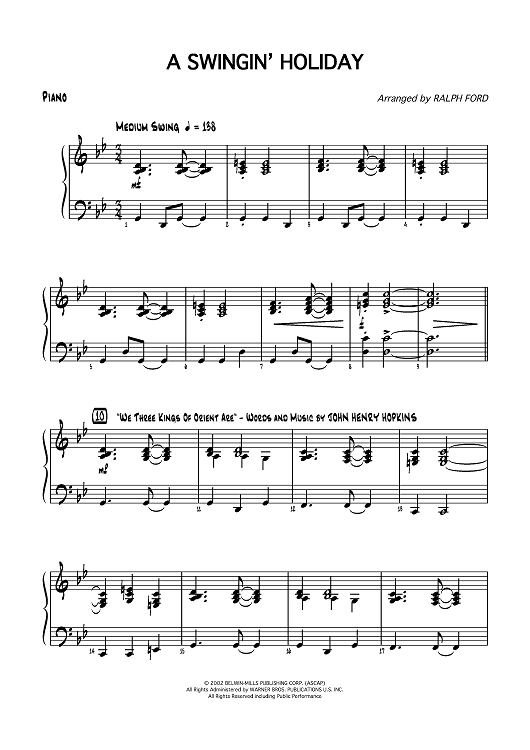 Digital Sheet Music for A Swingin' Holiday - Piano by Various, Ralph Ford scored for Jazz Ensemble; id:358504